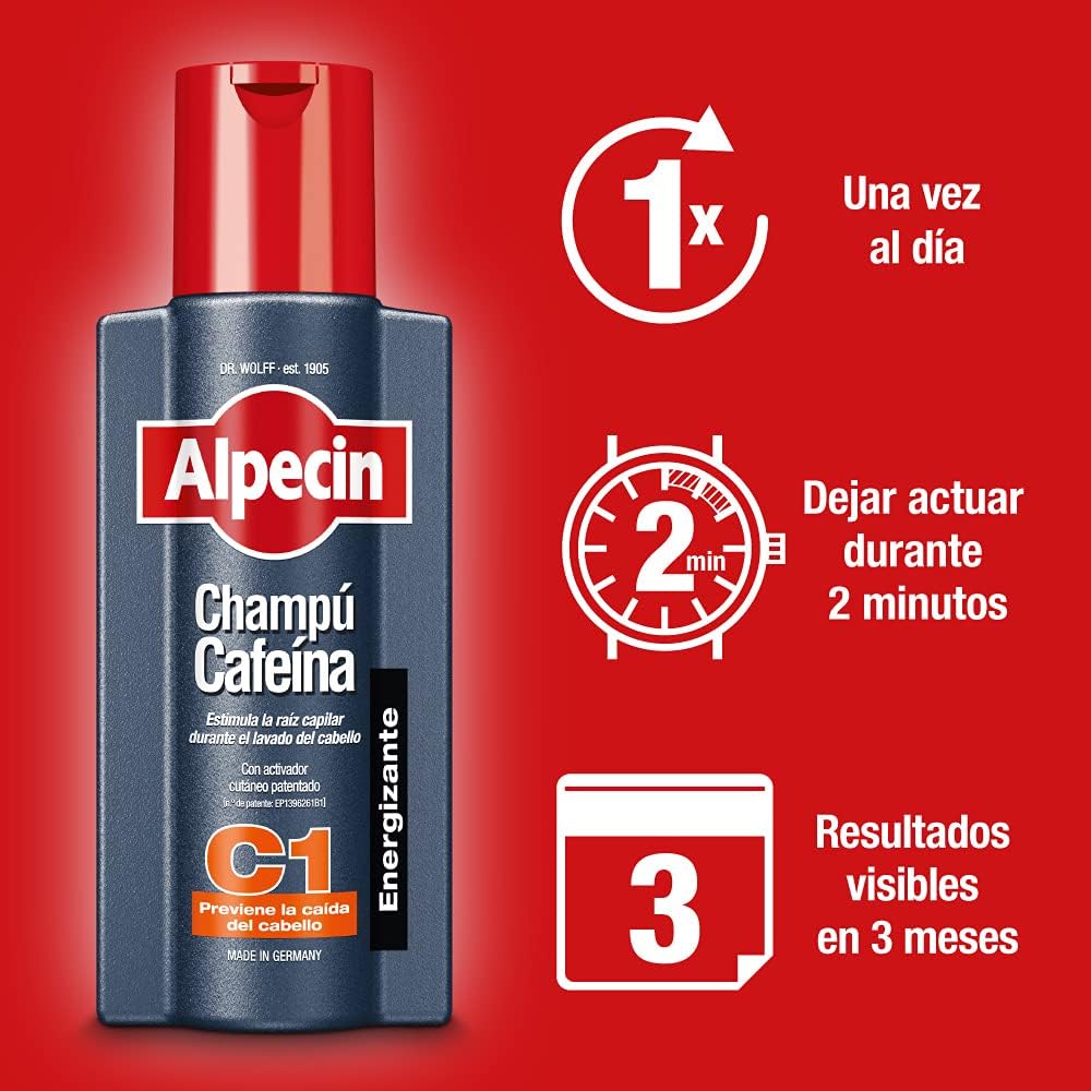 La caída del cabello es el problema número uno en los hombres. En el 80% de los casos, es alopecia androgénica la que preocupa a los hombres: La pérdida de cabello hereditaria es una predisposición genética y no una enfermedad. Por lo tanto, no puede ser curada sino que debe ser tratada continuamente. Debido a esto, una solución médica efectiva es el uso diario del shampoo Alpecin Caffeine más el tónico Alpecin Liquid como tratamiento a largo plazo.